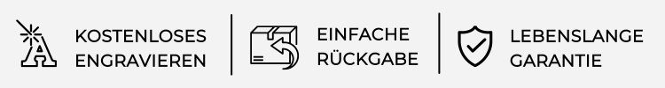 KOSTENLOSE GRAVUR. EINFACHE RĂśCKGABE. LEBENSLANGE GARANTIE.